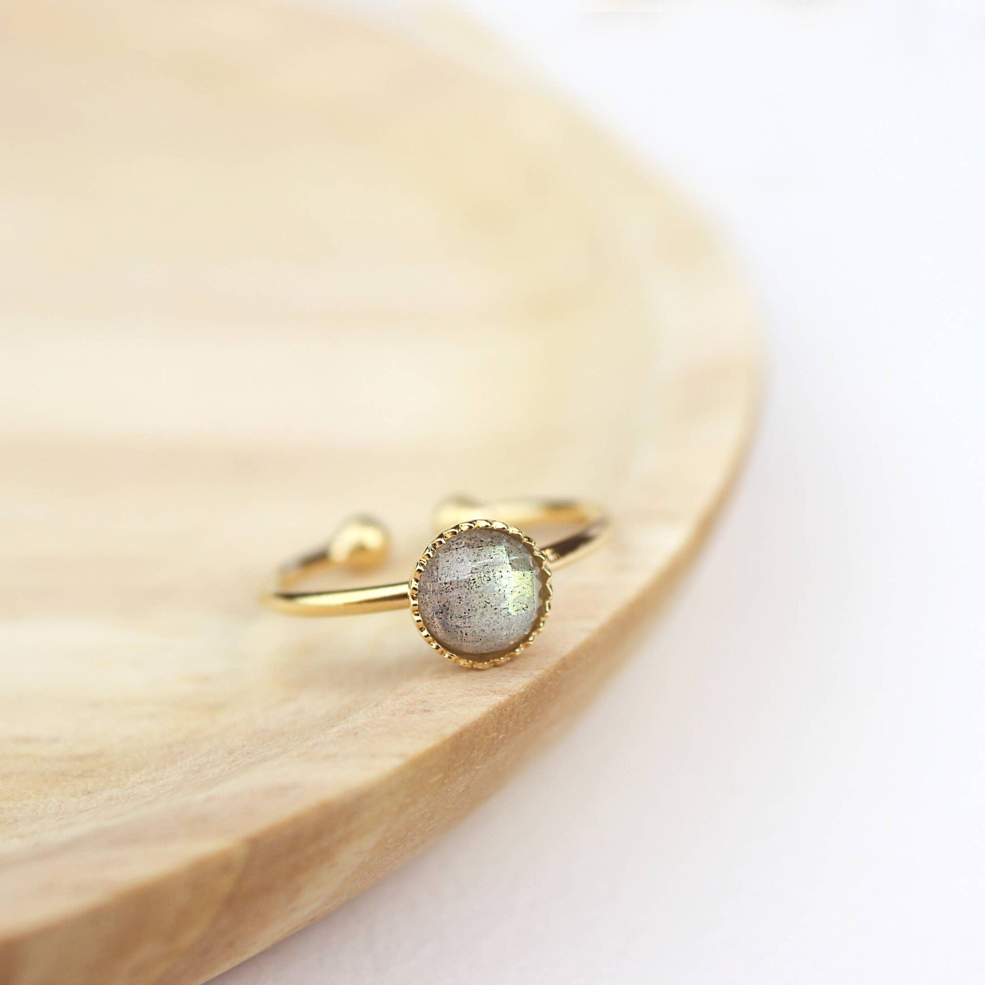 Colorée et minimaliste, bague avec petite pierre ronde.
