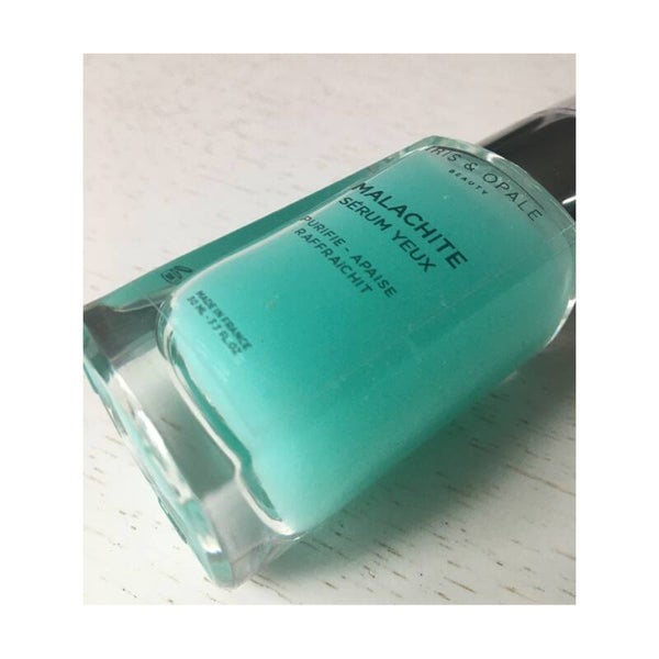 RAFRAÎCHIT – APAISE – ILLUMINE Le Sérum Yeux Malachite est un fluide réconfortant qui cible les besoins des contours des yeux gonflés ou irrités. Léger comme un nuage, il apporte une sensation de fraîcheur instantanée. Sa formule à 99,6 % d'origine naturelle enrichie en actifs biologiques préserve le confort de la zone délicate du contour de l'œil et aide à estomper la pigmentation du cerne. Utilisée il y a des millénaires dans la prévention des infections oculaires, la poudre de malachite est l'ingrédient central de ce sérum. Contenance : 30 ml Ingrédient : hydrolats de verveine et d'ylang-ylang, huile de jojoba, glycérine et aloe vera. 99,6% des ingrédients sont d'origine naturelle dont 98,3% sont certifiés biologiques. DDM : 12 mois Vegan Produit BIO Ecologique Cruelty free