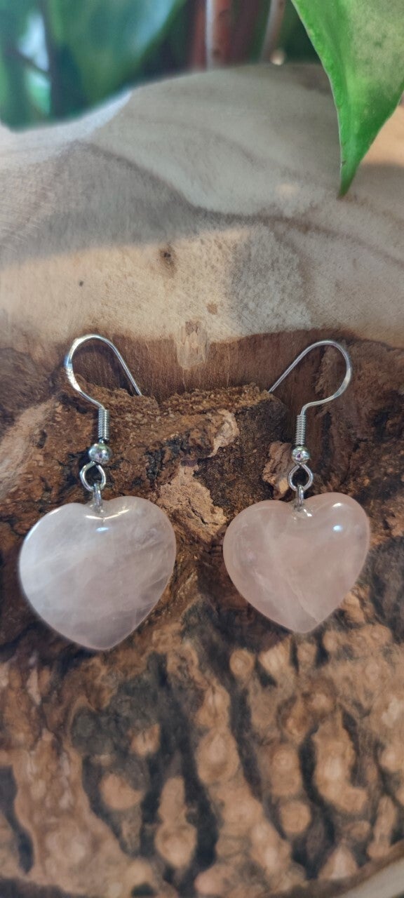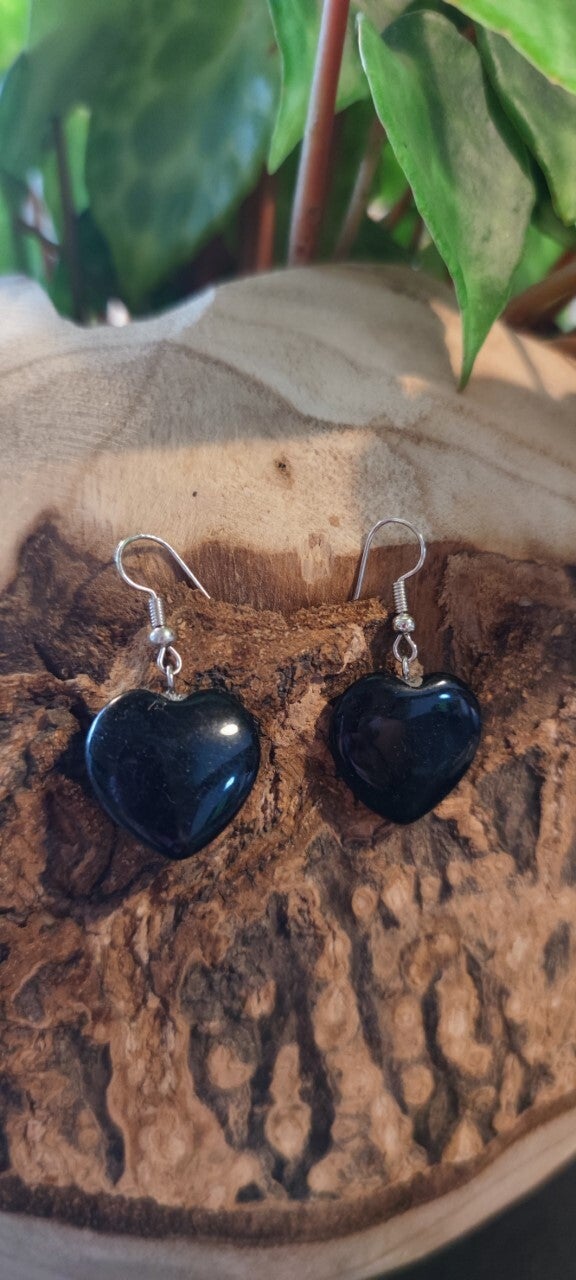 Boucles d'oreilles coeur; Amethyste, Jaspe Rouge, Howlite, Obsidienne noir, Quartz Rose.